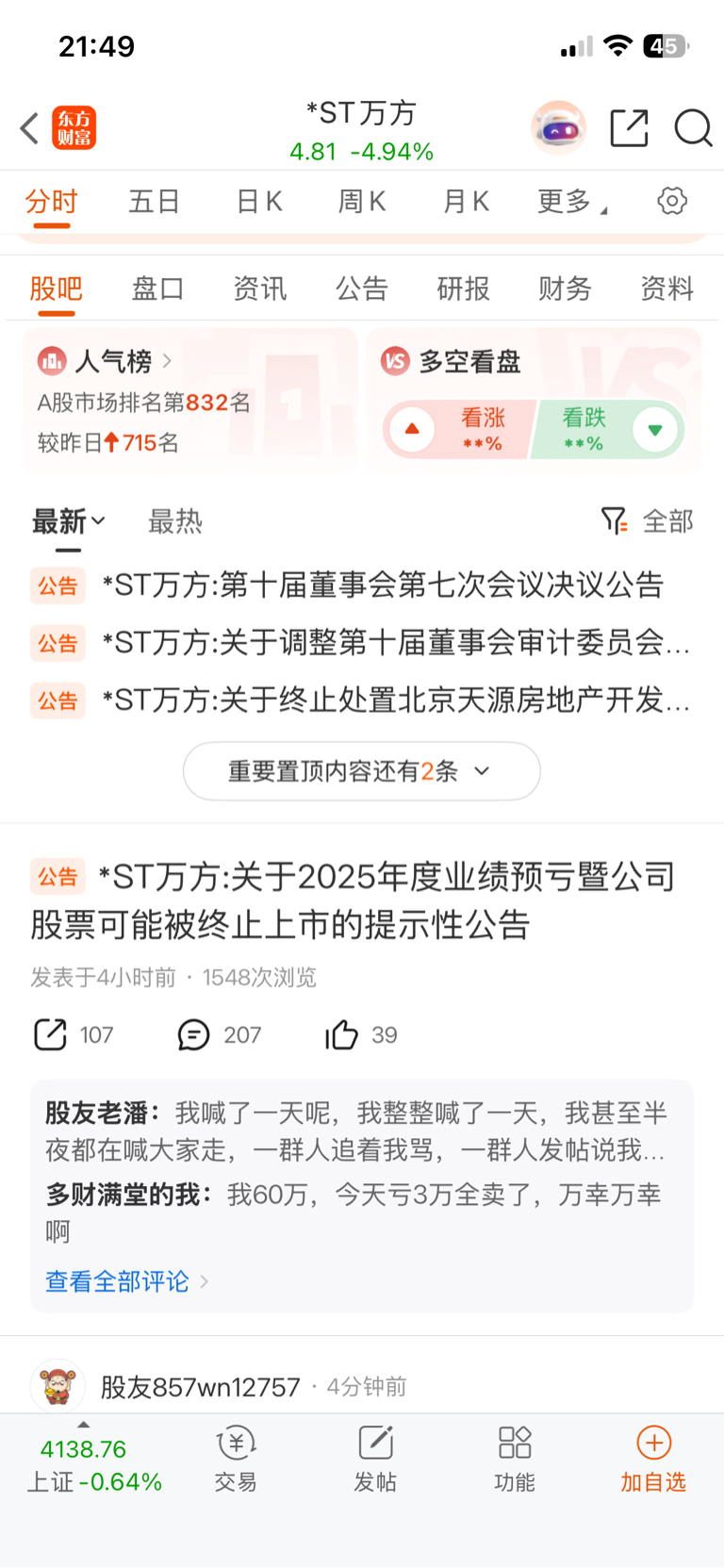 温馨提示: 1.根据《证券法》规定,禁止编造、传播虚假信息或者误导性信息,扰乱证券市场;2.用户在本社区发表的所有资料、言论等仅代表个人观点,与本网站立场无关,不对您构成任何投资建议。用户应基于自己的独立判断,自行决定证券投资并承担相应风险。《东方财富社区管理规定》