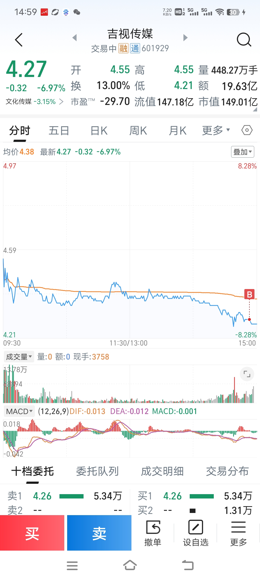 $吉视传媒(SH601929)$ 还是想赌一把明天的人气