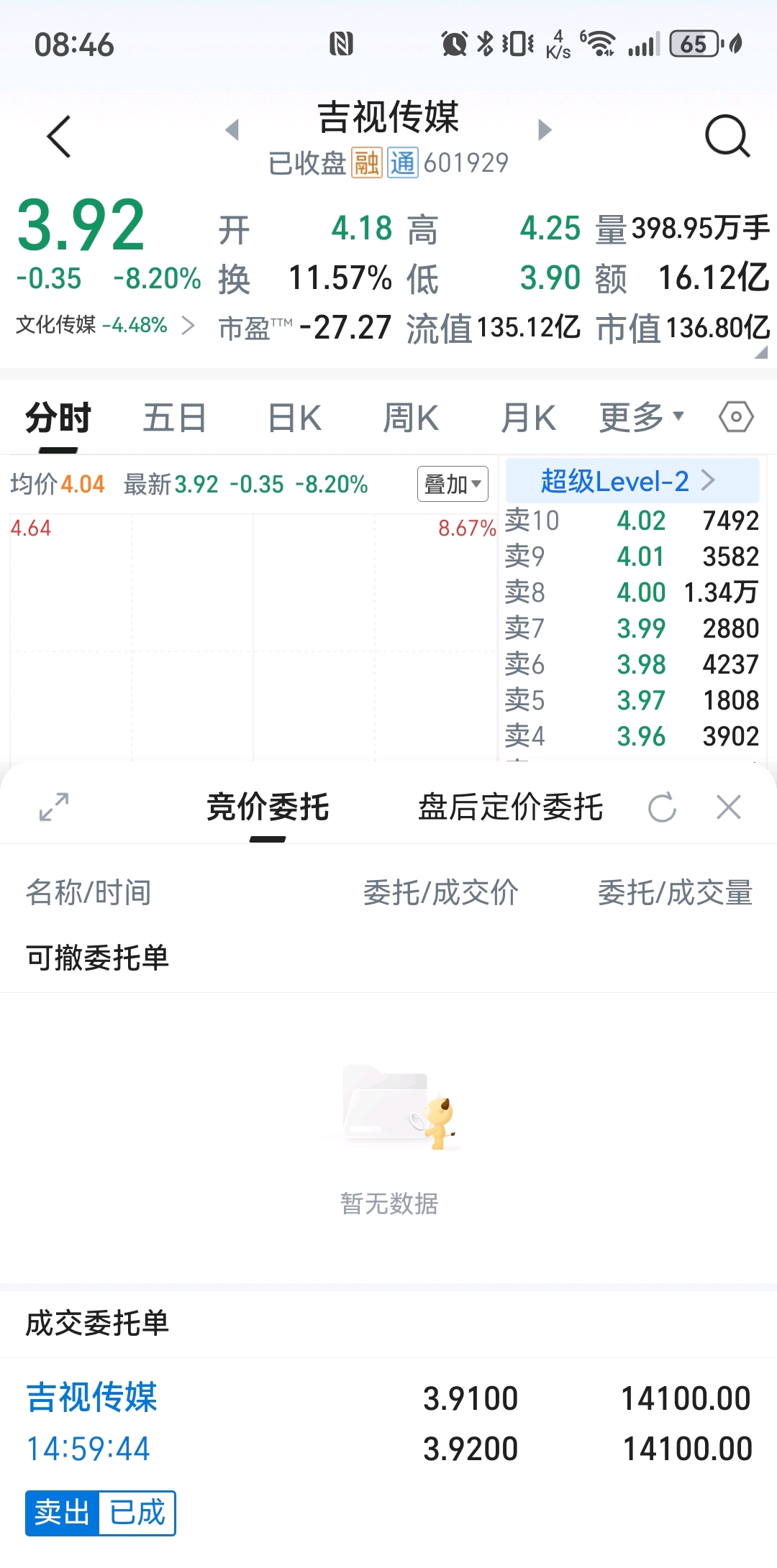 $吉视传媒(SH601929)$ 今天在割一点,成本又到7块了,哎