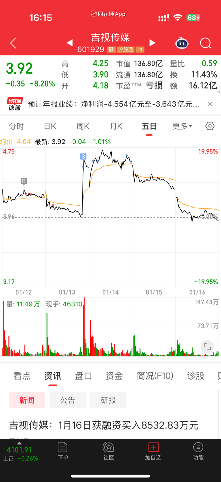 $吉视传媒(SH601929)$ 又开始下跌趋势