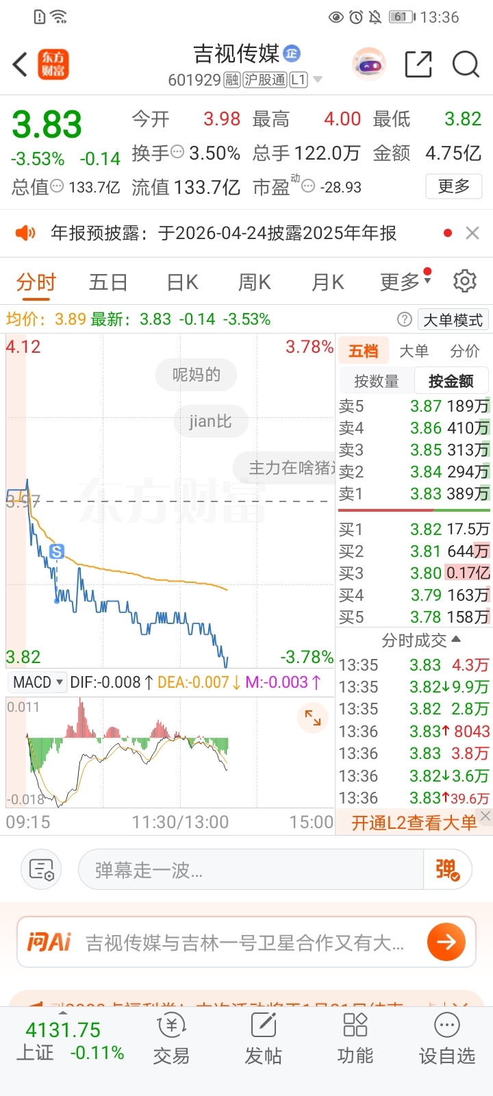 $吉视传媒(SH601929)$ 在这里亏得手脚都冰凉了 走了,各位发财