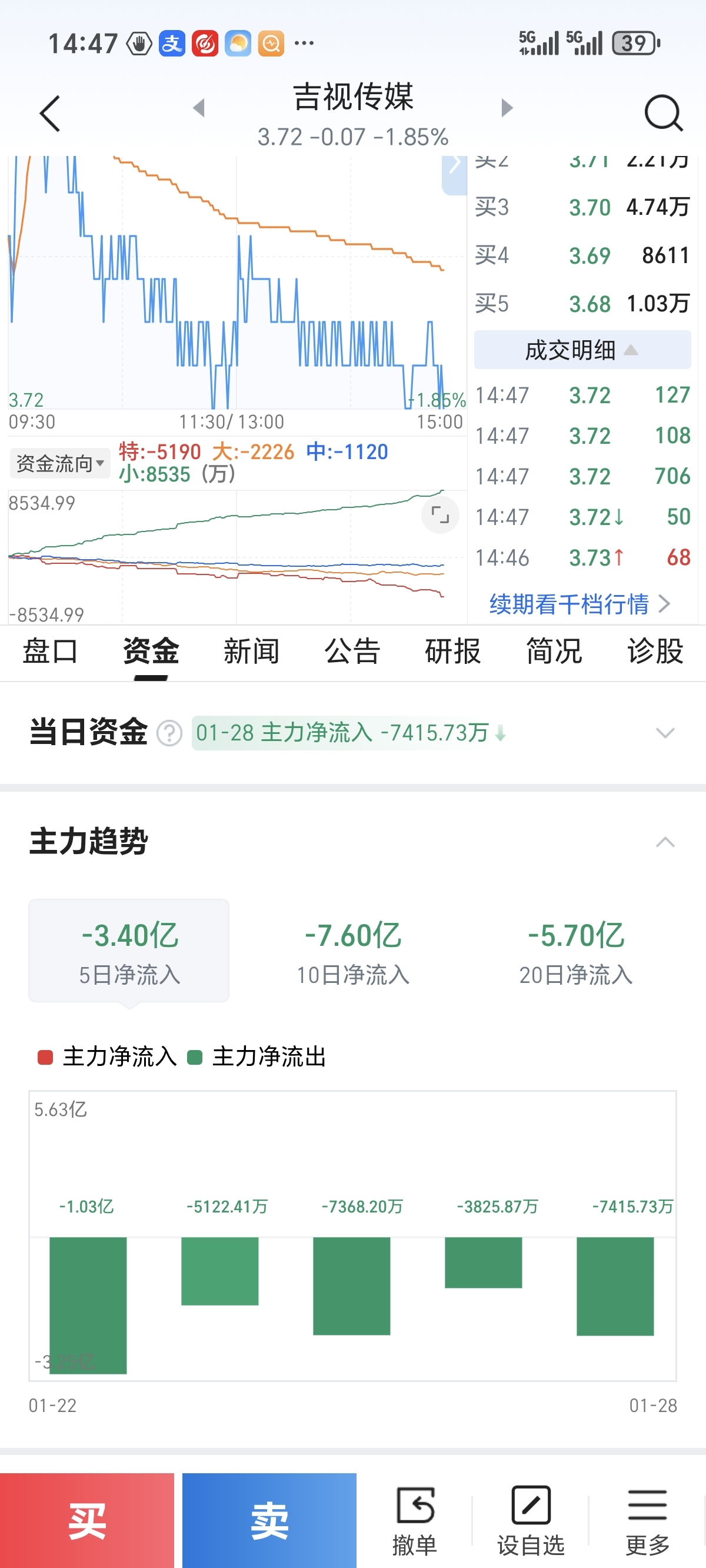 $吉视传媒(SH601929)$ 血流干了快,天天流