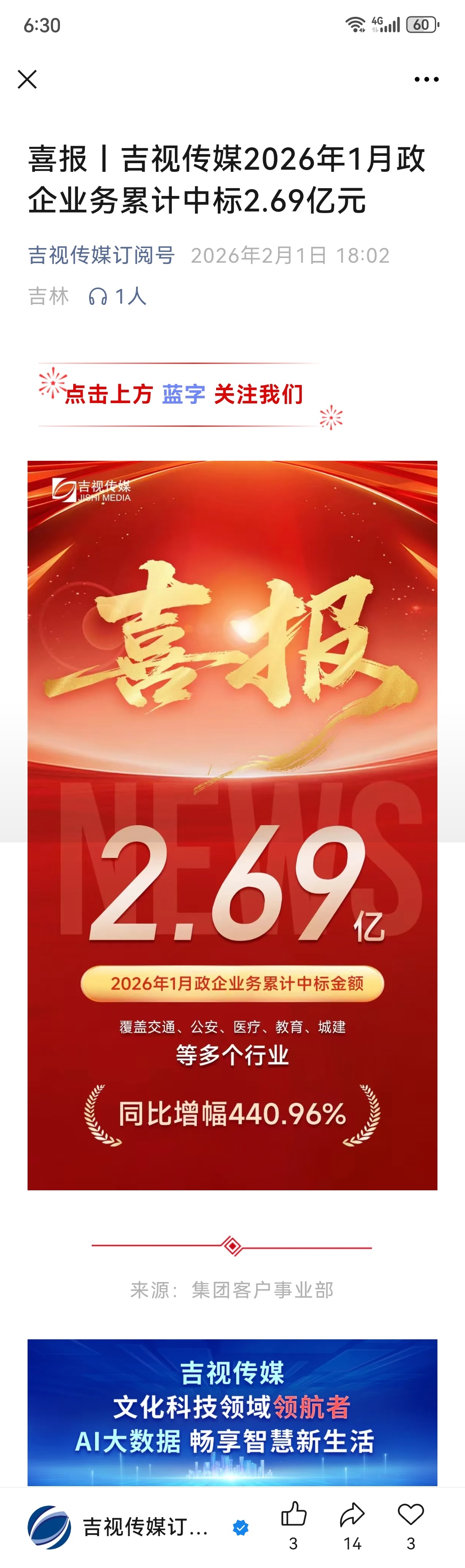 $吉视传媒(SH601929)$ 明天会不会打脸?