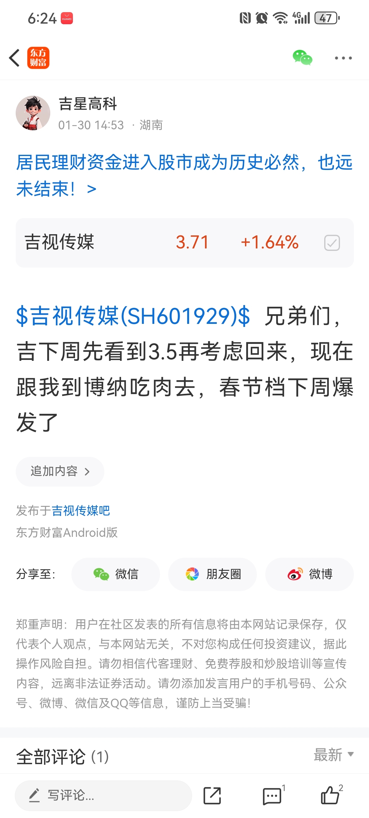 $吉视传媒(SH601929)$ 果然还是烂泥扶不上墙,真后悔上周五尾盘又买进去了你,明天给个机会出来。都跟我全仓梭哈博纳吃大肉吧