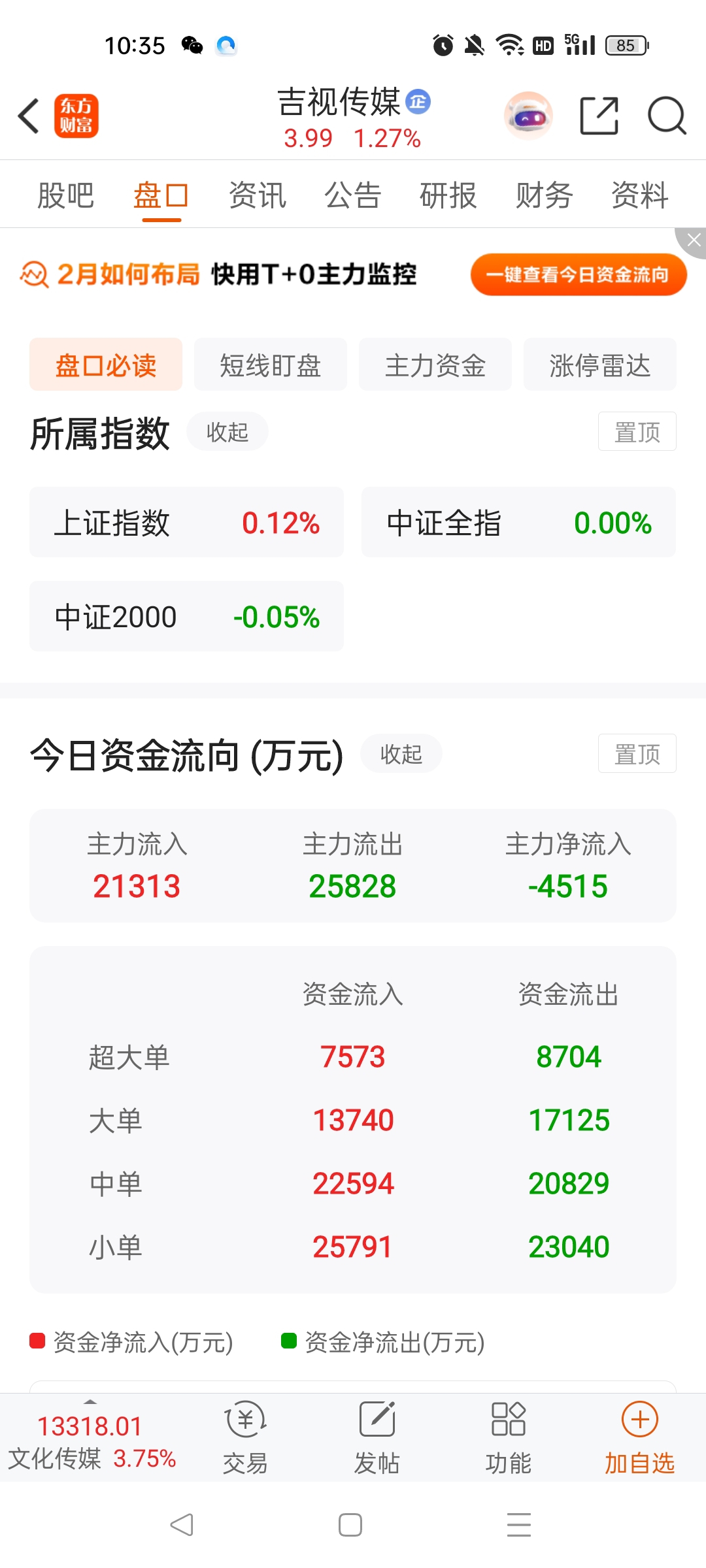 $吉视传媒(SH601929)$ 小庄没格局,出货4500万了……