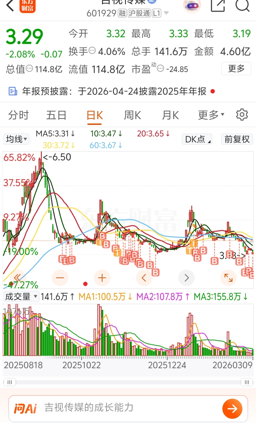 $吉视传媒(SH601929)$ 盈利20%没跑倒亏10%!一浪比一浪低日线周线月线全部向下,下次拉升当天就清盘一分不留!