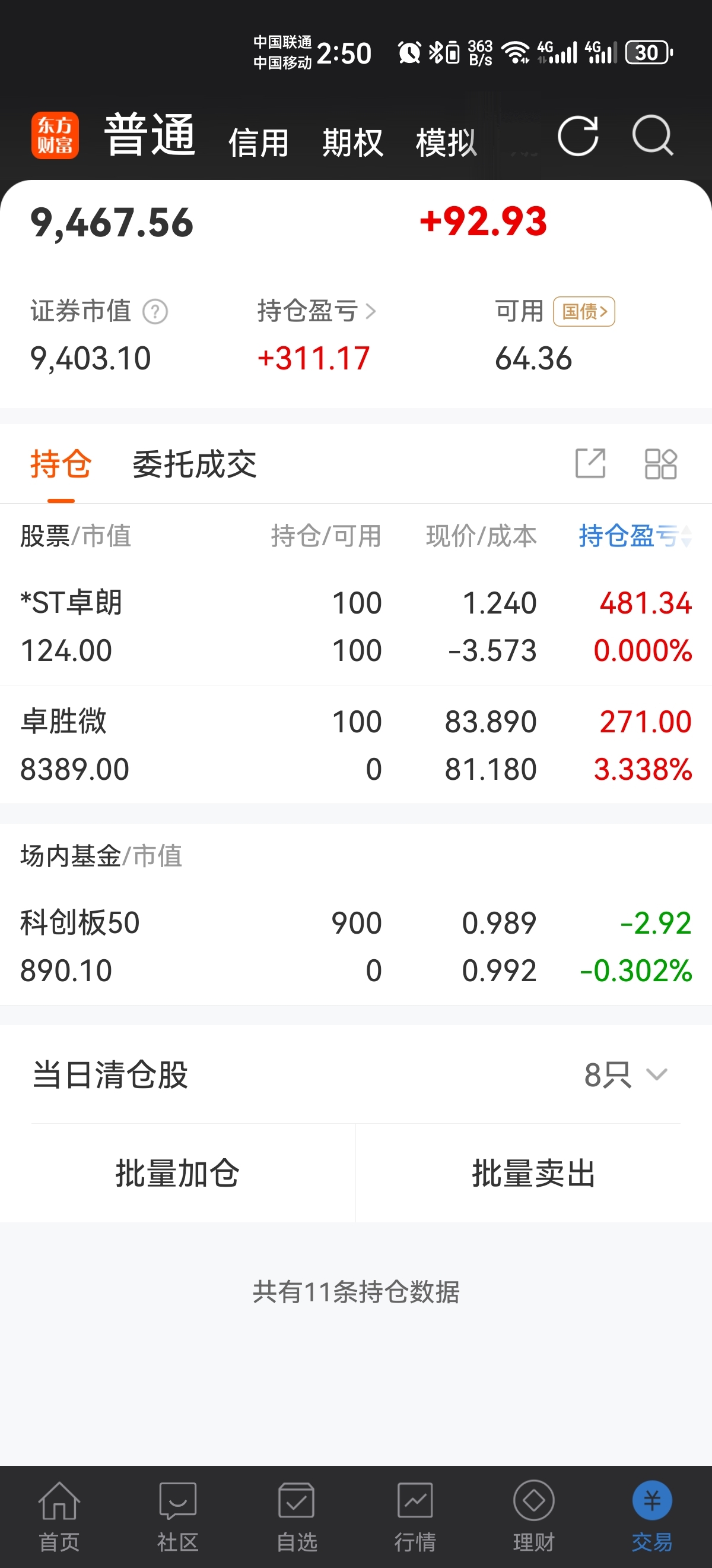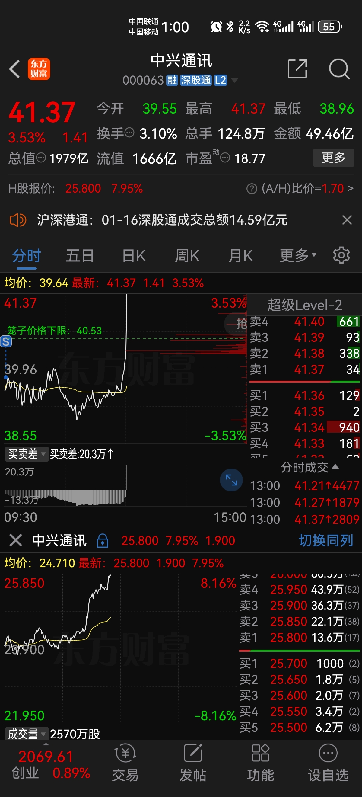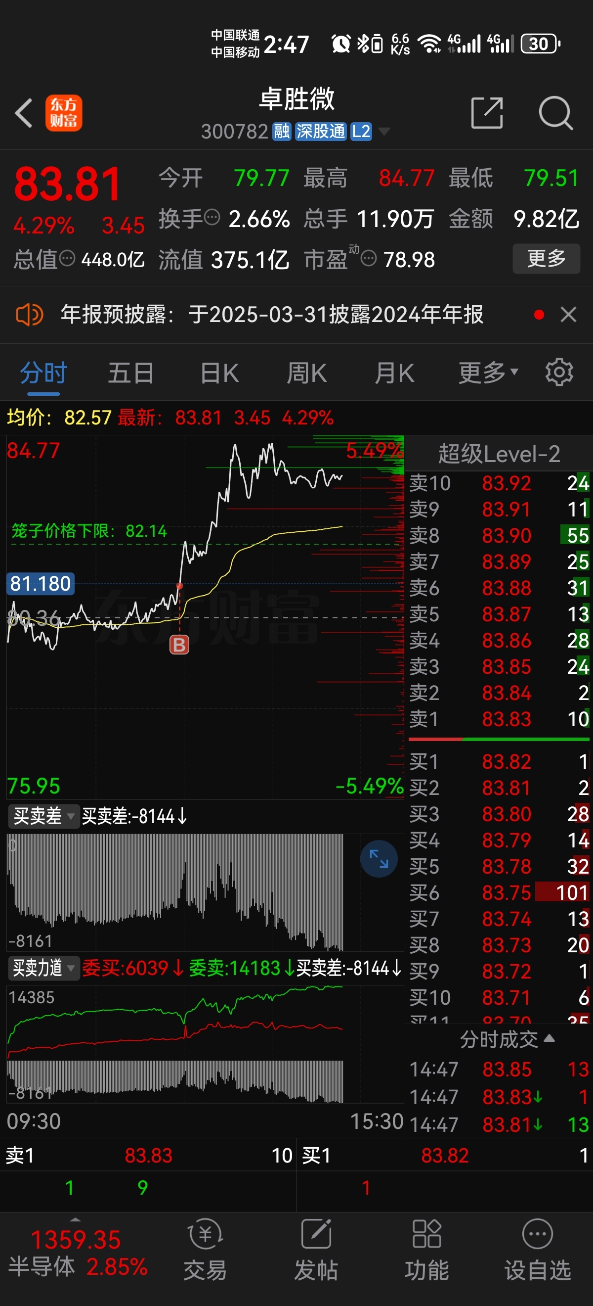 我割了你们随意吧!卖飞中兴通讯。买入了卓胜微