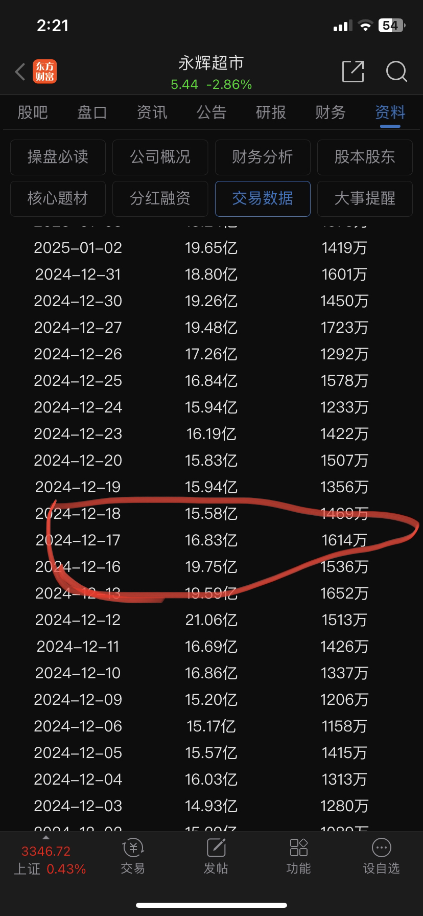 $永辉超市(SH601933)$ 其实从这天资金就看出已经达到顶点了然后一路做空下来,融资金额一下从那个19亿锐减到16亿,开始走下坡路