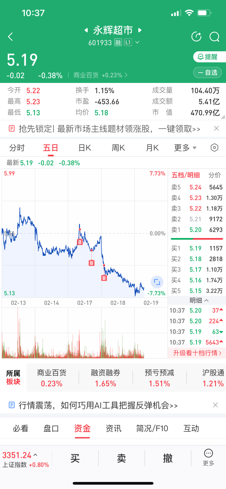 $永辉超市(SH601933)$ 谁有我惨一进来就套了九个点