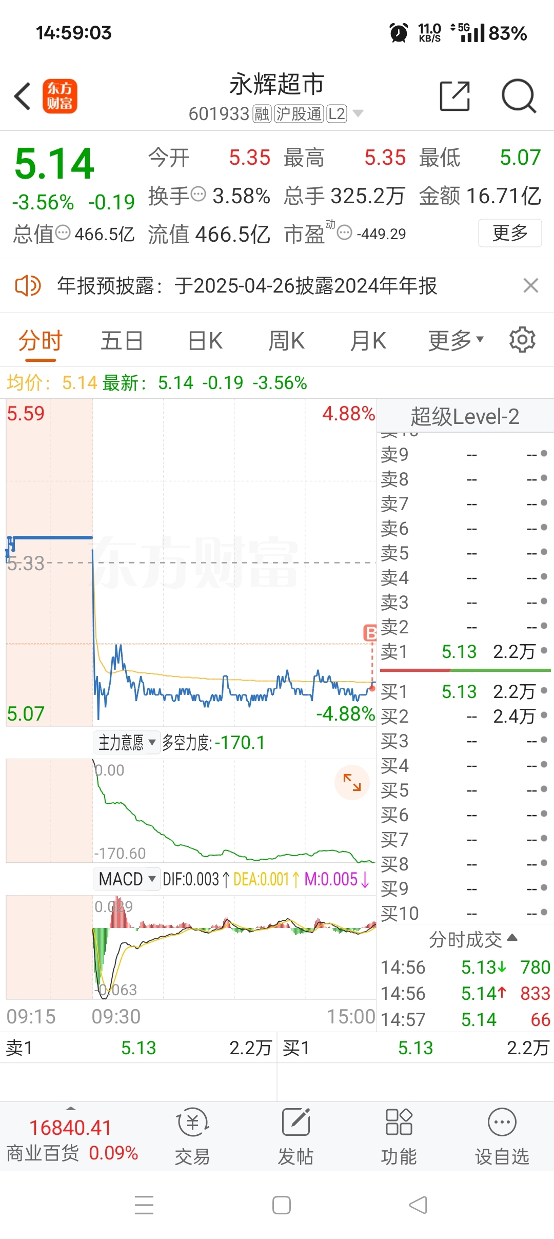 $永辉超市(SH601933)$ 今天不能让我亏钱了吧