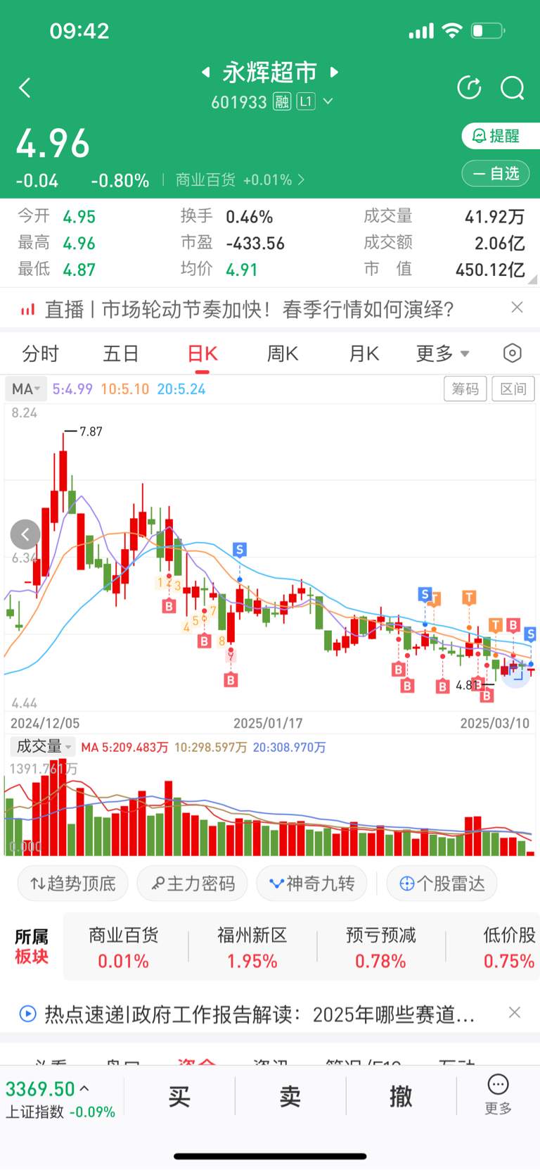 $永辉超市(SH601933)$ 拿了一个多月手续费都去掉了两百多 我走了,你该长了