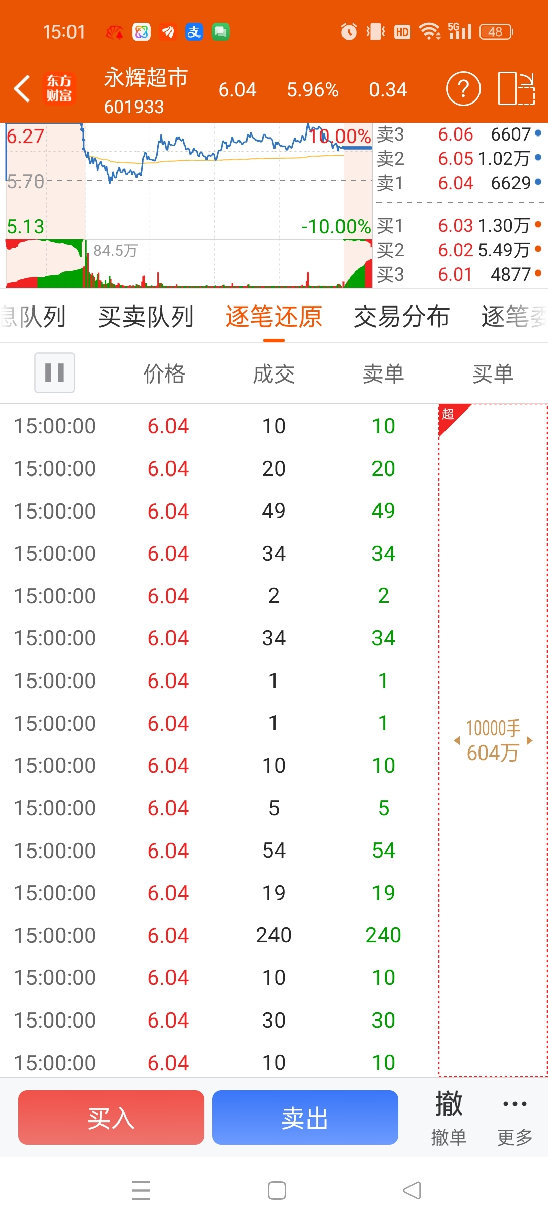 尾盘主力万手买了6万手下午高位主力一直在进散户出来了底部筹码没动明天涨停了