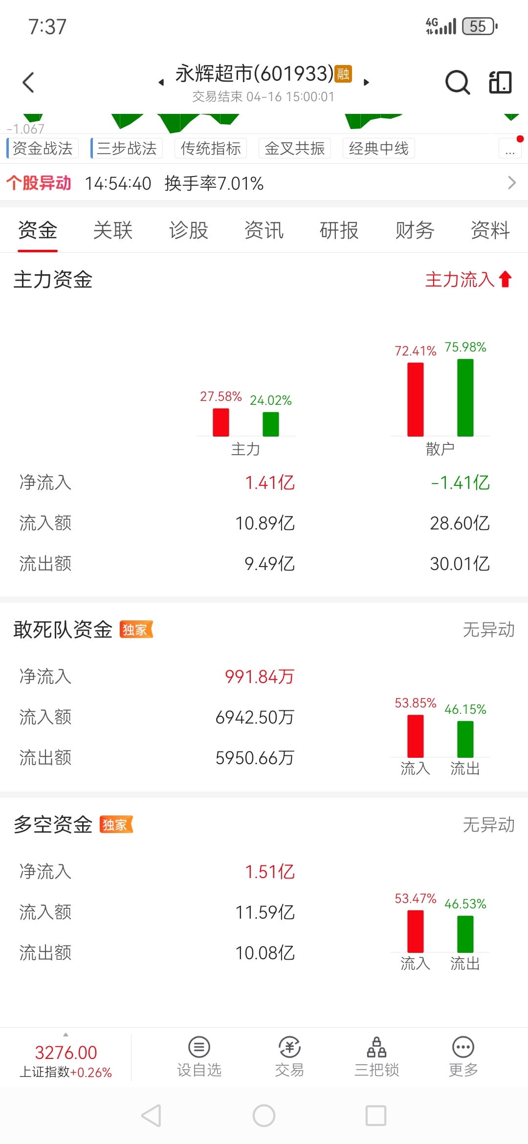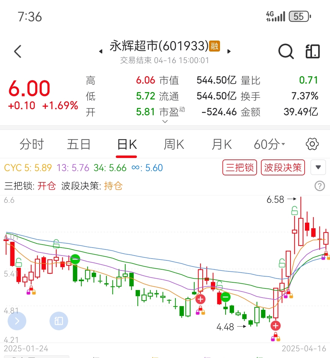 永辉超市三把锁提示开仓,波段决策提示持股,今天资金净流入1.51亿