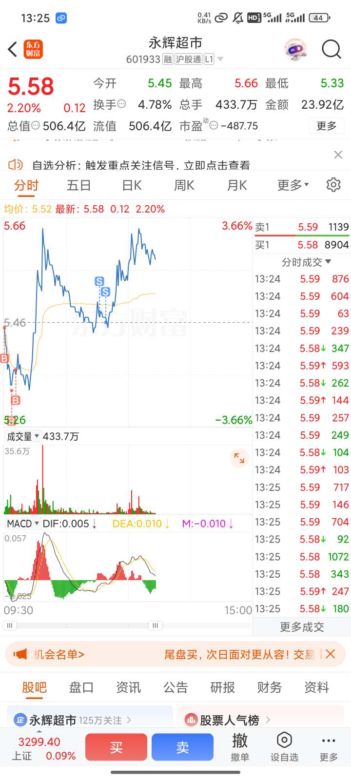 $永辉超市(SH601933)$ 刚早上卖了,做丅做飞了