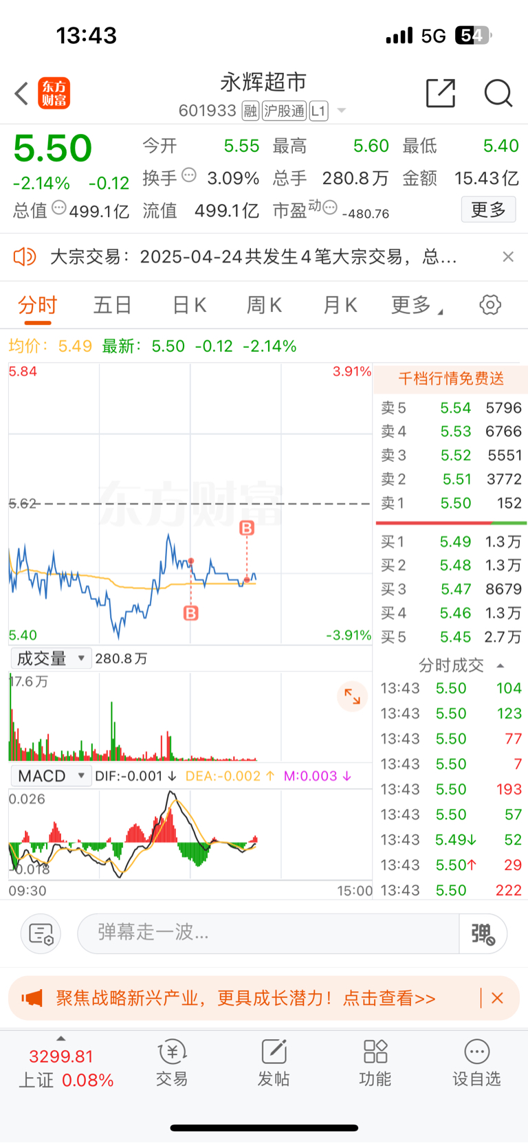 进个一万股。目前永辉超卖状态,即使反弹也有几点利润。