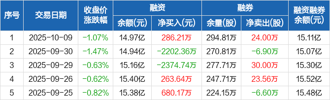 永辉超市:融资净买入286.21万元,融资余额14.97亿元(10-09)