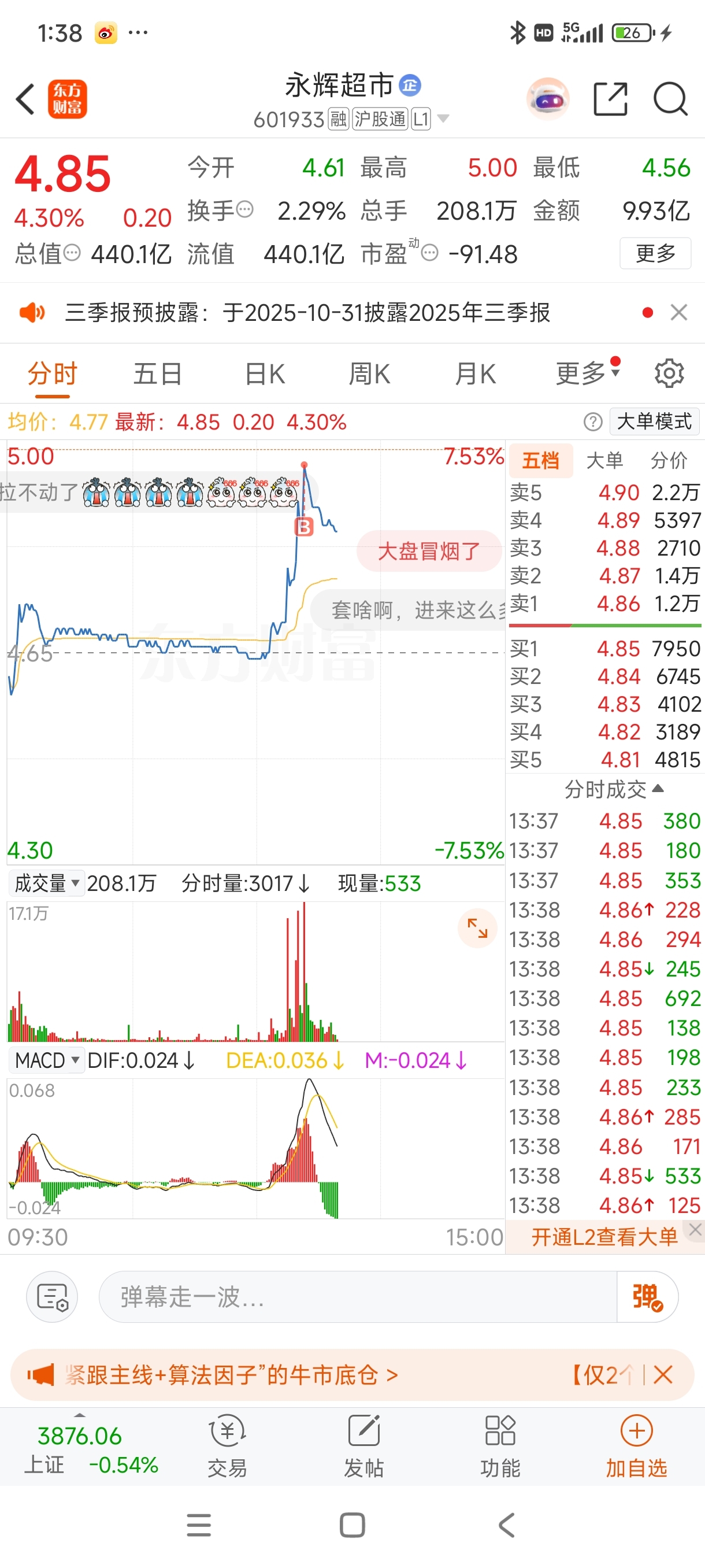 $永辉超市(SH601933)$ 对不起各位 我买崩的