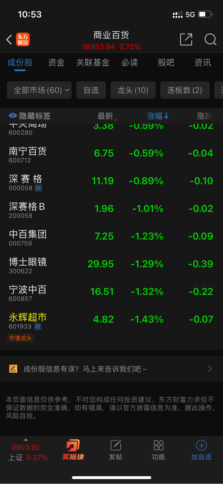 $永辉超市(SH601933)$ 倒数第一也是第一