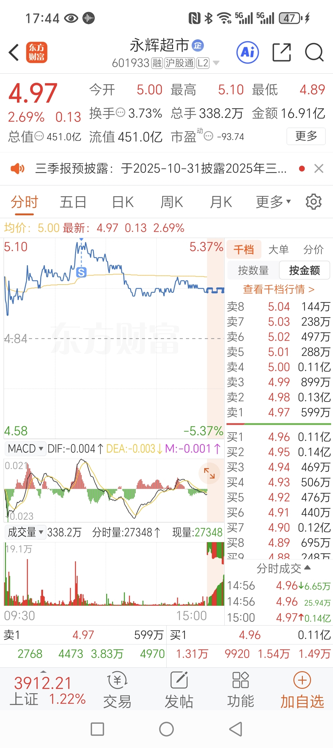 $永辉超市(SH601933)$ 卖飞也得佩服我今天的操作