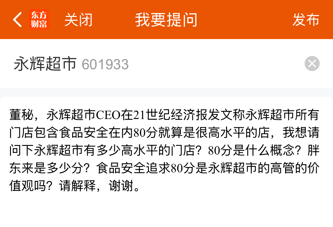 $永辉超市(SH601933)$ 期待永辉超市关于CEO食品安全言论的如实详细的答复。
