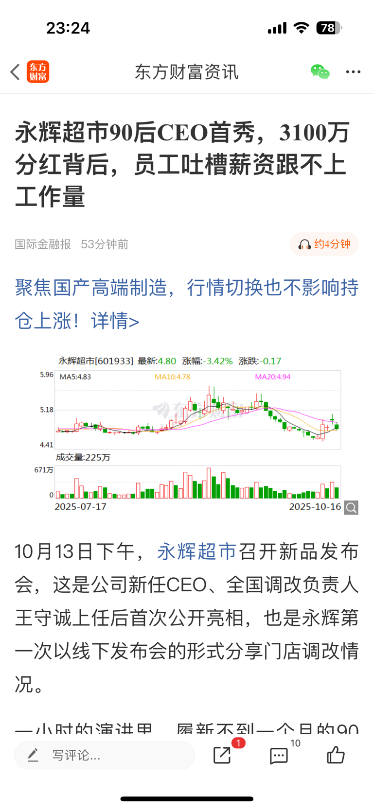 $永辉超市(SH601933)$ 这消息,至少两个跌停板起步吧。明天就看集合竞价给不给机会跑了。