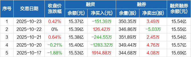永辉超市:融资净偿还151.39万元,融资余额15.37亿元(10-23)
