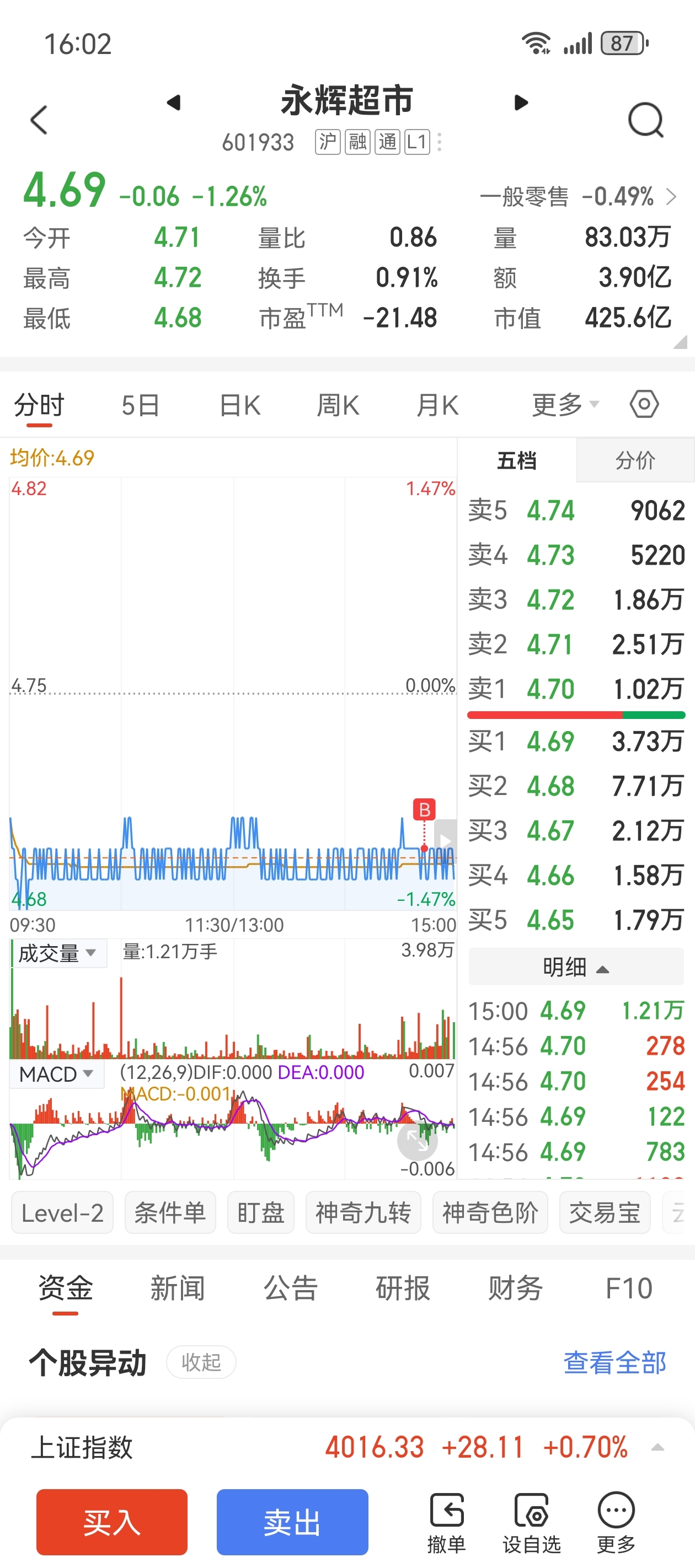 $永辉超市(SH601933)$ 买了。进来就被套0.15%