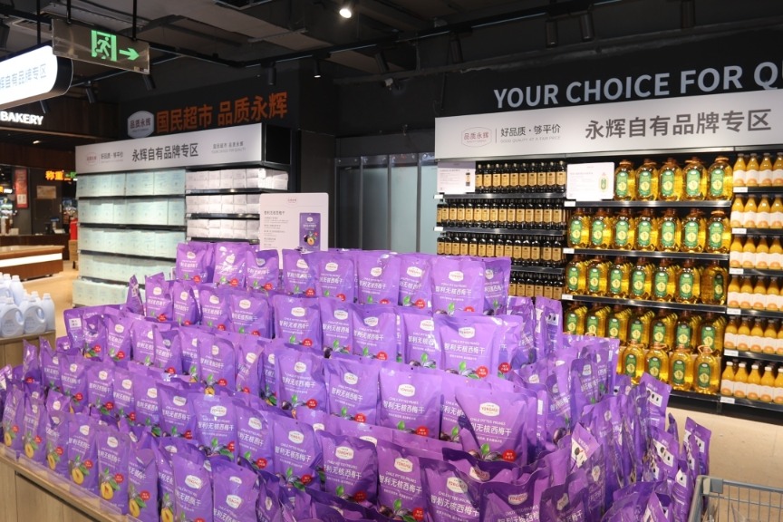 食百板块方面,两店同步引入多款胖东来同款人气商品,如DL番茄复合果蔬汁、水果燕麦脆、香氛洁净洗衣凝珠等。在永辉定制方面,坚持“同价品质更优、同品价格更低”原则,与伊利等知名品牌合作推出的定制鲜牛奶与简配方酸奶深受欢迎。品质永辉自有品牌则强调质价比平衡,如YONGHUI橙汁甄选优质橙源并添加NFC原汁,品质严控;YONGHUI微胶囊香氛酵素洗衣液融合高定香氛与专利去异味技术,实现三段式持久留香,提升日常生活的细节体验。