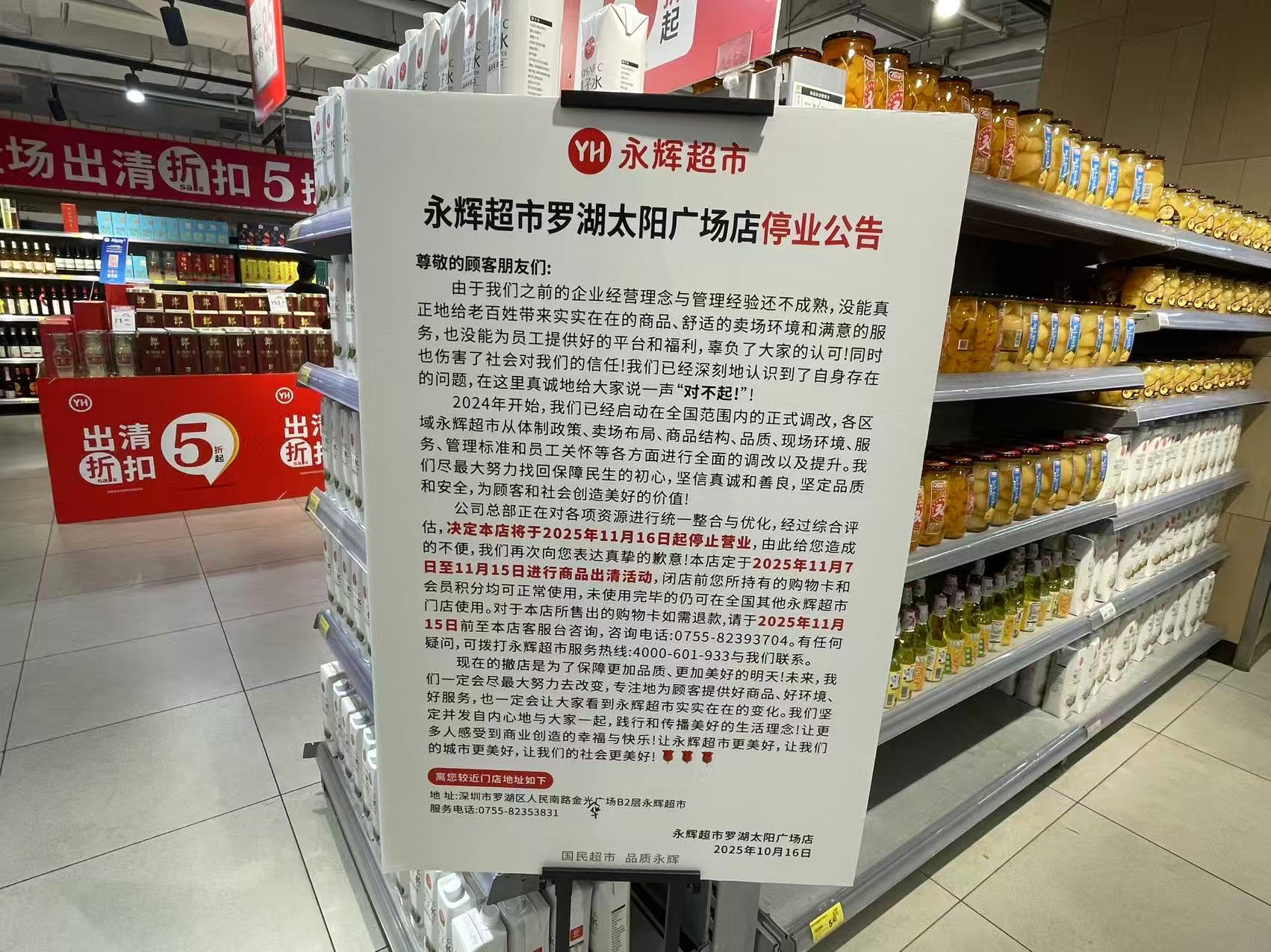 图:永辉超市罗湖太阳广场店停业公告。周良成/摄