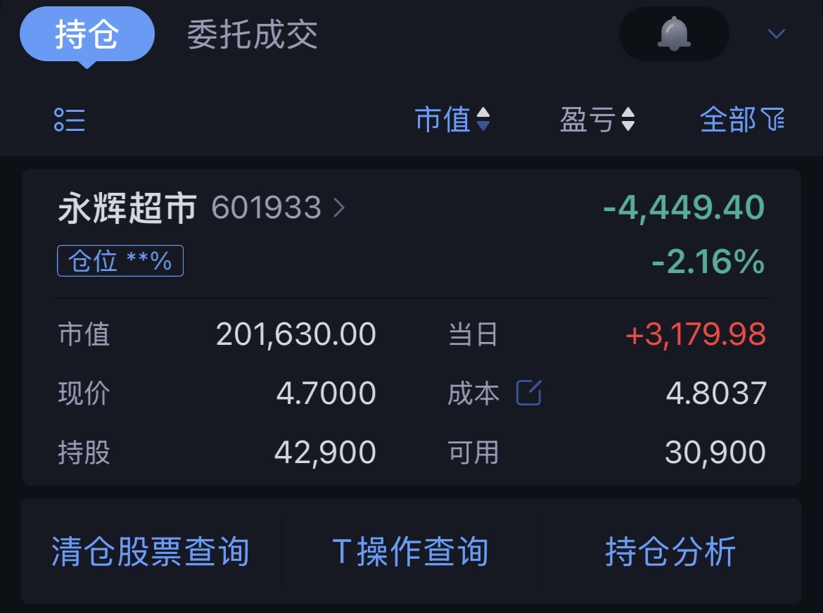 $永辉超市(SH601933)$ 还差一毛钱,回本!!!老伙伴们,你们还在吗?