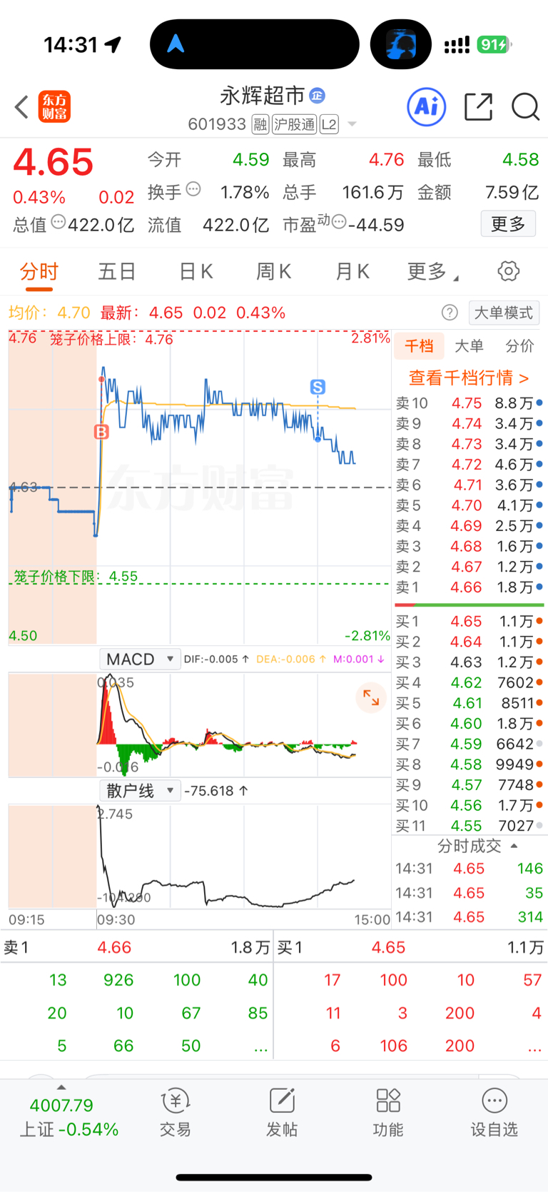 $永辉超市(SH601933)$ 最好的方法,他进我也进,他砸我也砸#炒股日记# #实盘记录# #投资随笔#