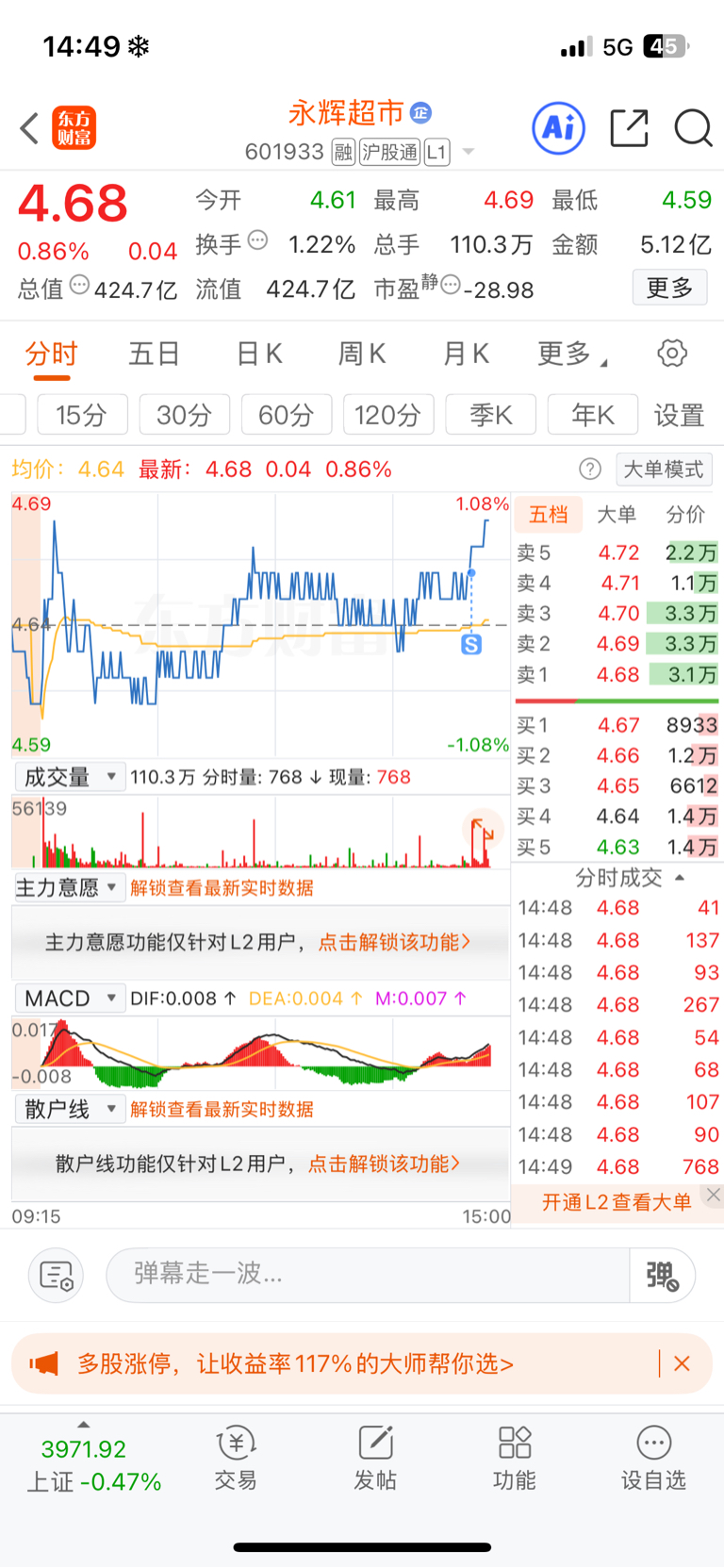 $永辉超市(SH601933)$ 我卖了你可以涨了