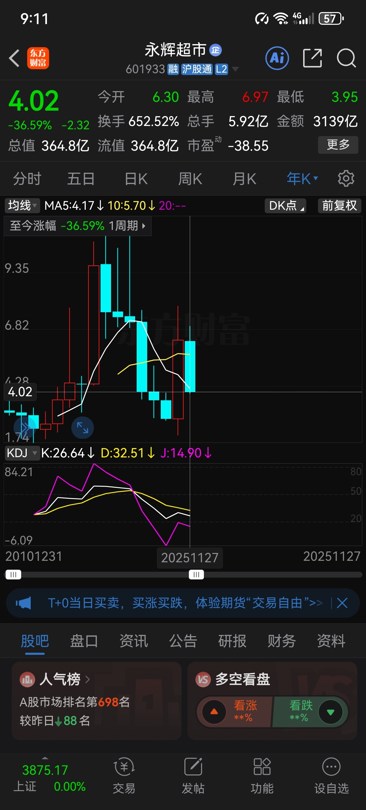 $永辉超市(SH601933)$ 今年跌幅超过36%,熊居今年榜首