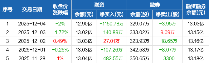 永辉超市:融资净偿还1150.78万元,融资余额12.9亿元(12-04)