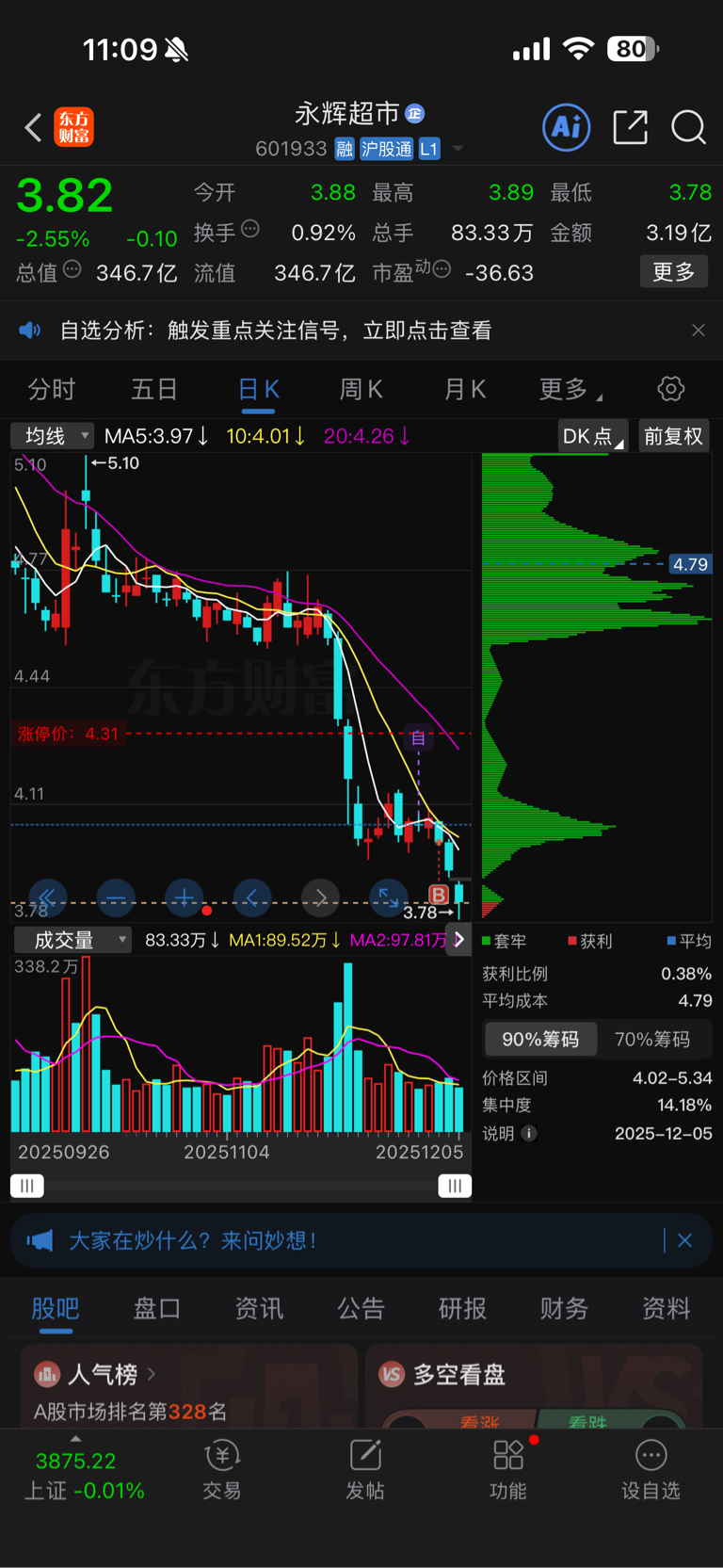 $永辉超市(SH601933)$ 断崖式下跌,每天2-3个点