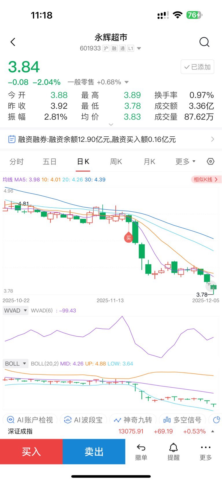 $永辉超市(SH601933)$ 你们说我该怎么办?亏了超20%了,割了吗?#炒股日记# #股市怎么看# #复盘记录# #周度策略# #投资干货# 你们割了吗?我亏超20%了