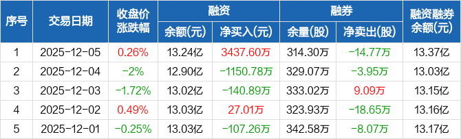 永辉超市:融资净买入3437.6万元,融资余额13.24亿元(12-05)