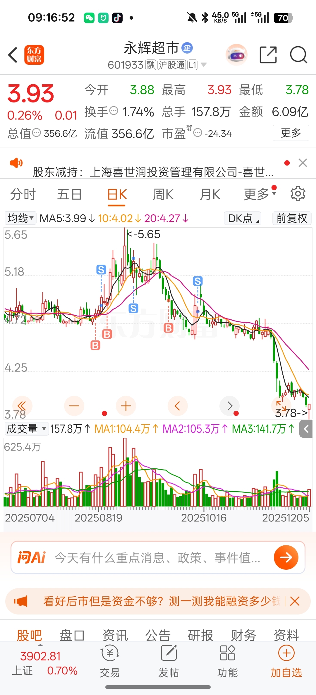 $永辉超市(SH601933)$ 回头看,惊出一身冷汗
