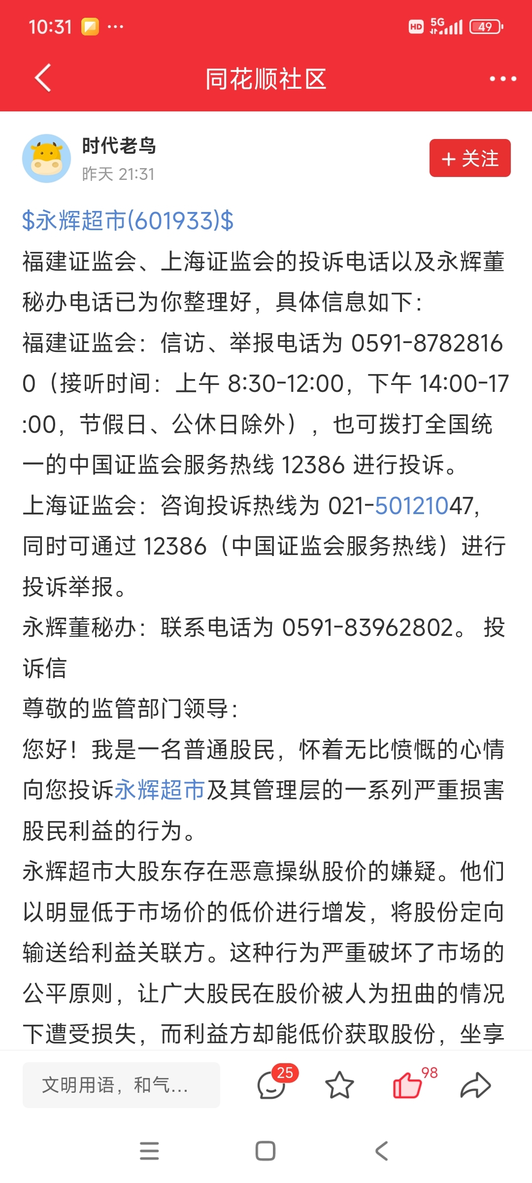 $永辉超市(SH601933)$ 同花顺哥们都在举报了,怎么这里股东是不是也要行动起来