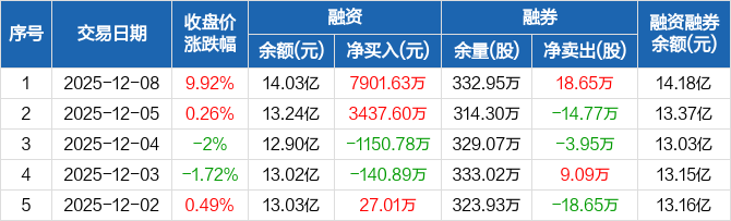 永辉超市:融资净买入7901.63万元,融资余额14.03亿元(12-08)