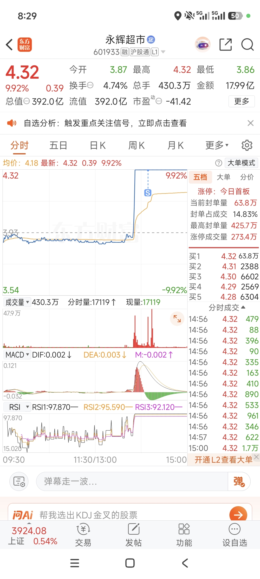 $永辉超市(SH601933)$ 我好没出息,一下就被吓跑了