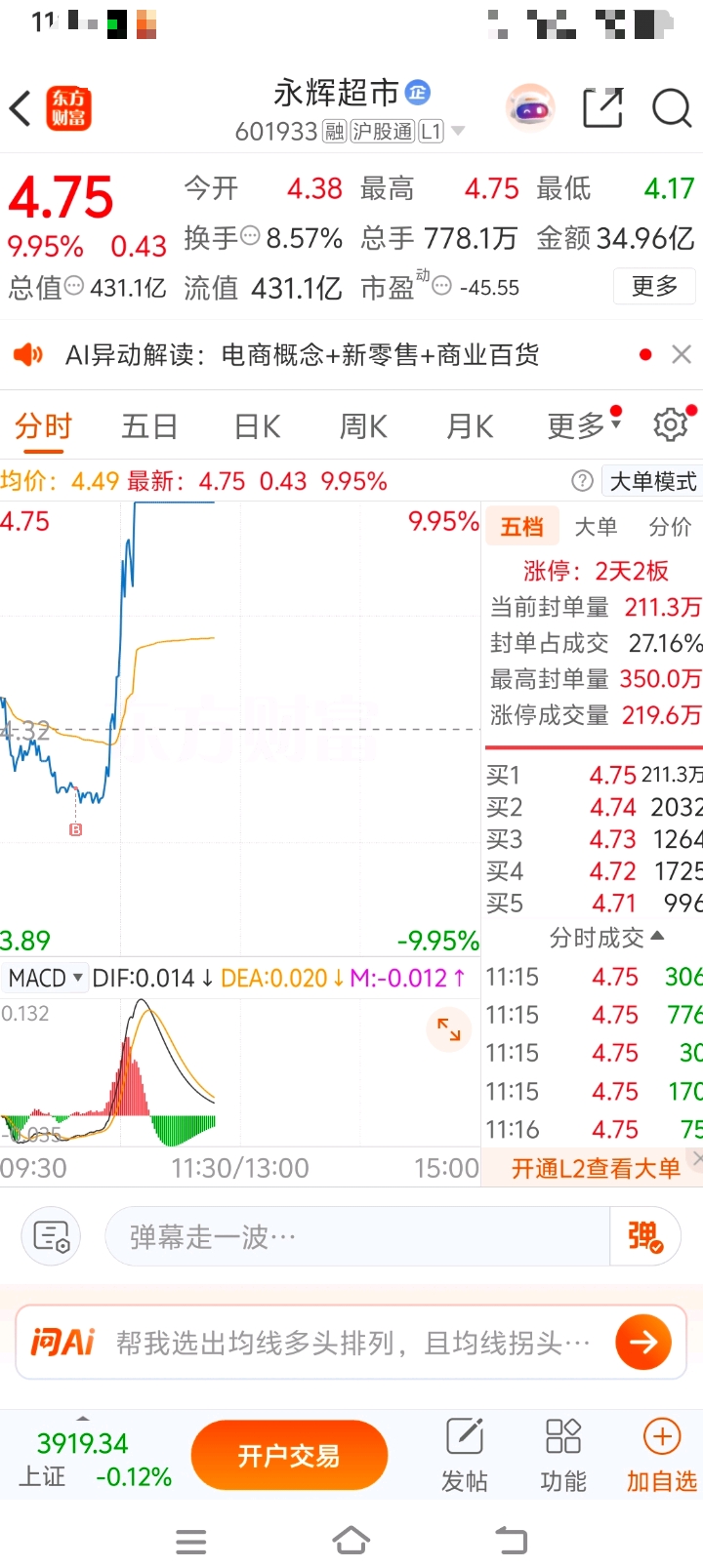 $永辉超市(SH601933)$ 该支票虽然虾仁进场博弈成功了,但是后续得实时观察,看起来像是主力自救给我们这样的散户出来的假象,