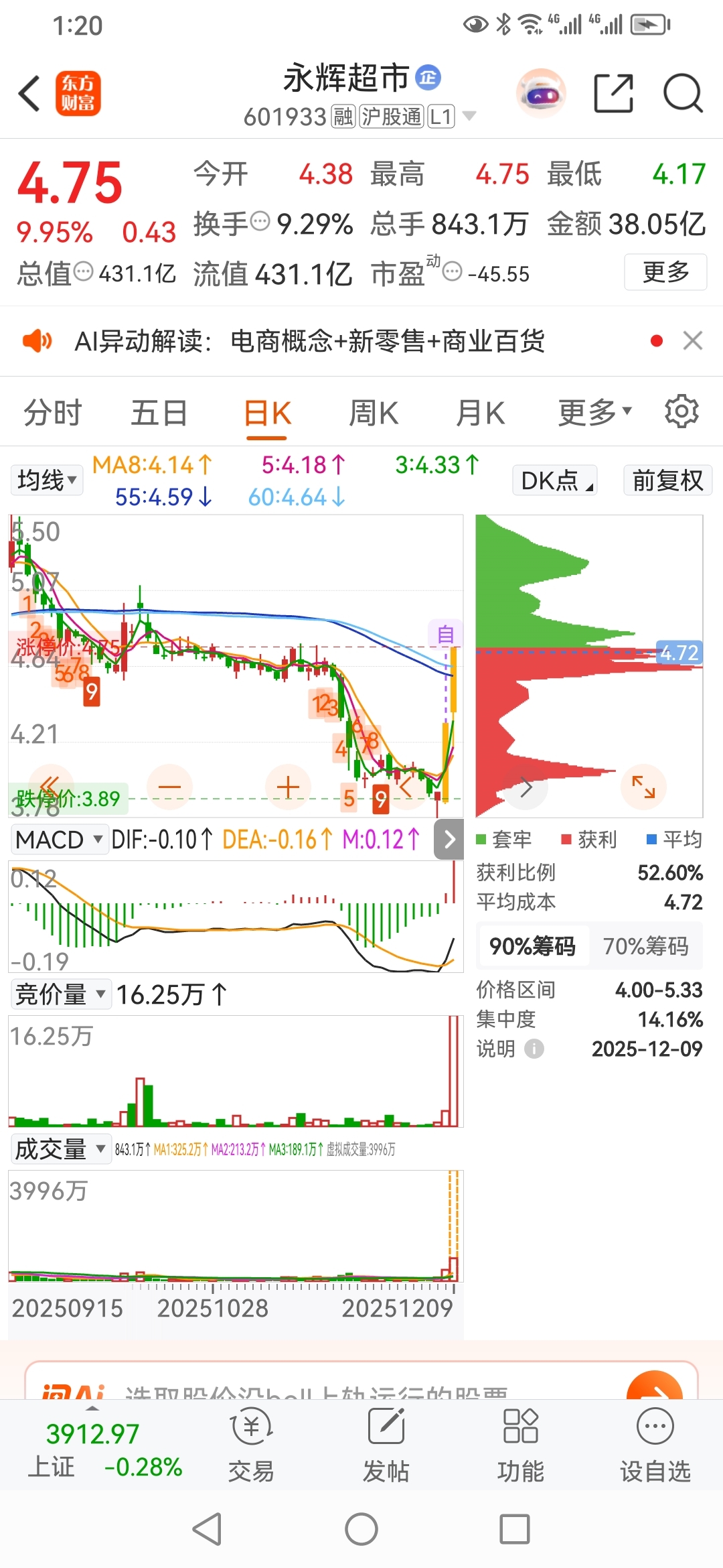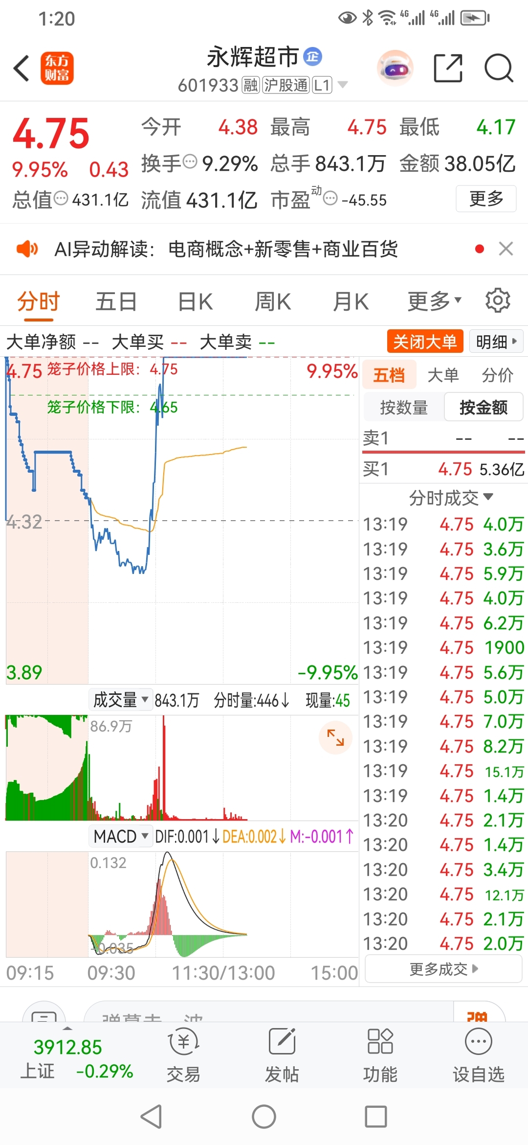 军哥股票 今天涨停板 永辉超市601933 早盘试错 低买 大涨加仓到半仓。可以融资,昨日涨停,福建,百货。跟上东百集团。
