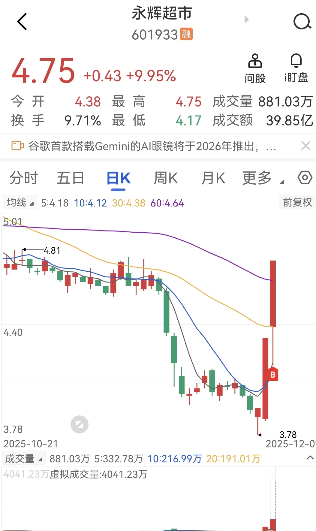 $永辉超市(SH601933)$ 开盘4.35买进,回调时把我吓坏了,还好有惊无险