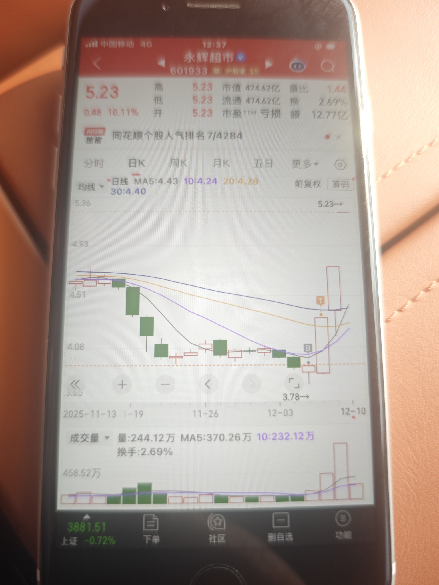 $永辉超市(SH601933)$ 感恩市场 再次精准擒龙