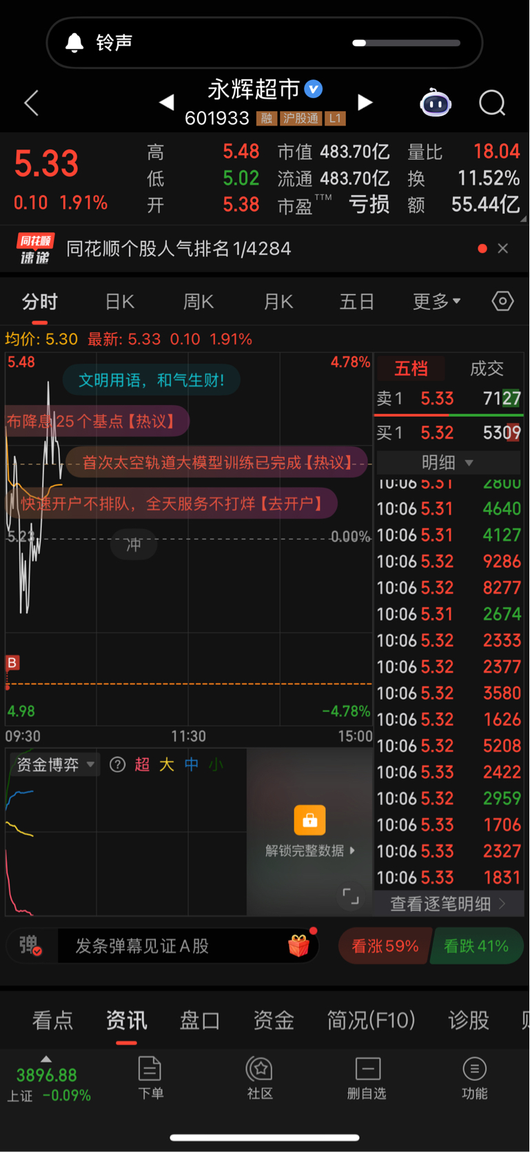 $永辉超市(SH601933)$ 真舒服今天