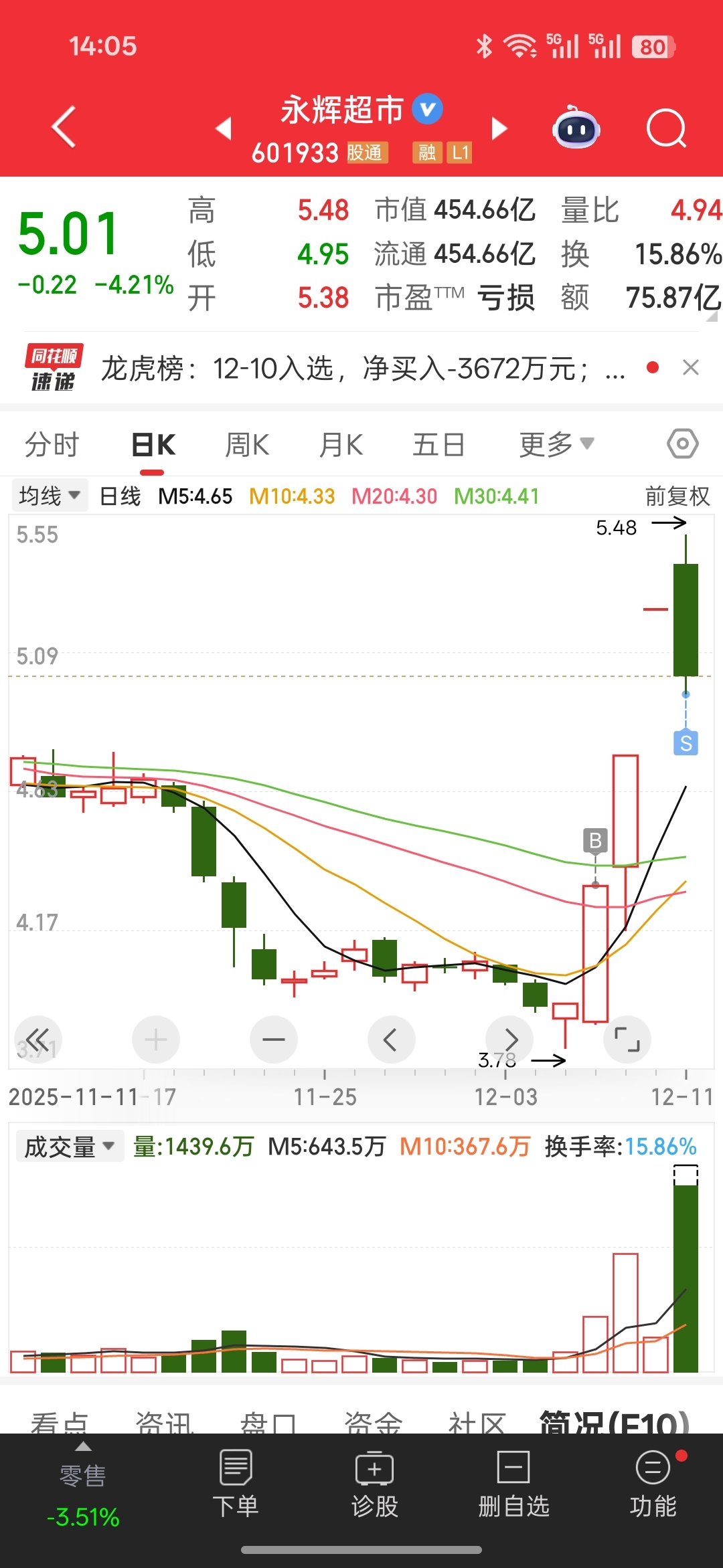 $永辉超市(SH601933)$ 感谢永辉,我先走了,留下的发财。