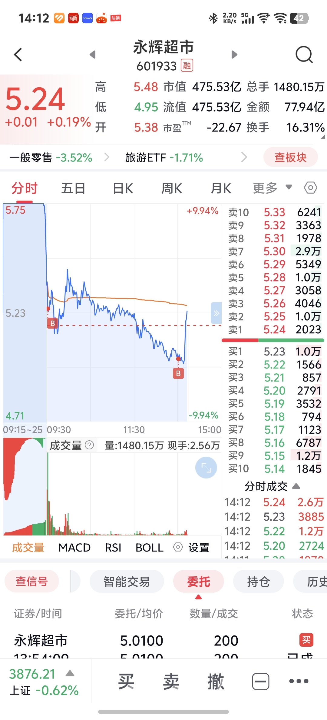 $永辉超市(SH601933)$ 底部加部分仓位