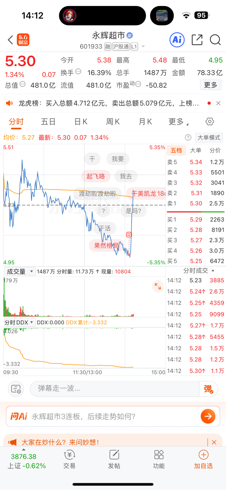 $永辉超市(SH601933)$ 看K线是必死,我点火了,小群大帝跟上了