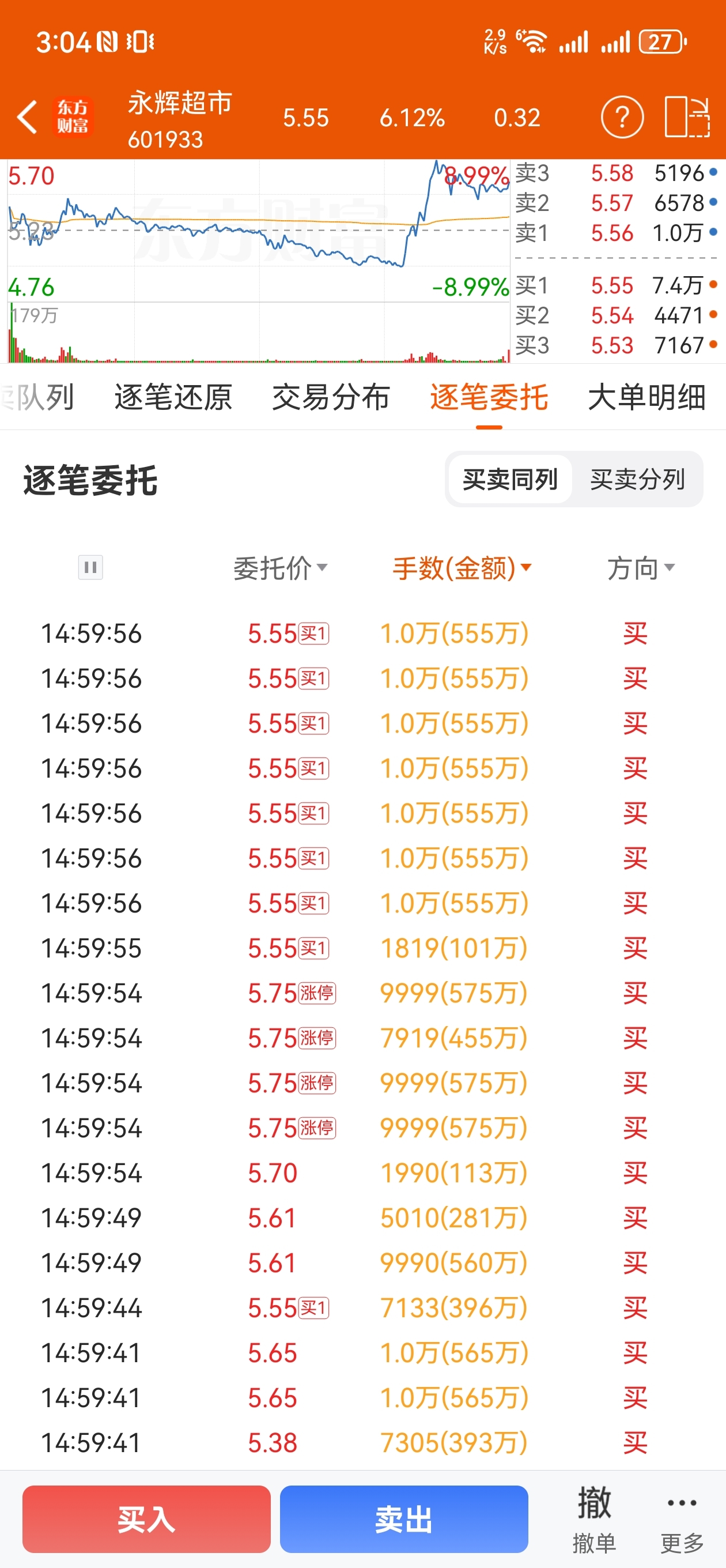 $永辉超市(SH601933)$ 第一次见这样尾盘抢筹的规模,群总牛逼